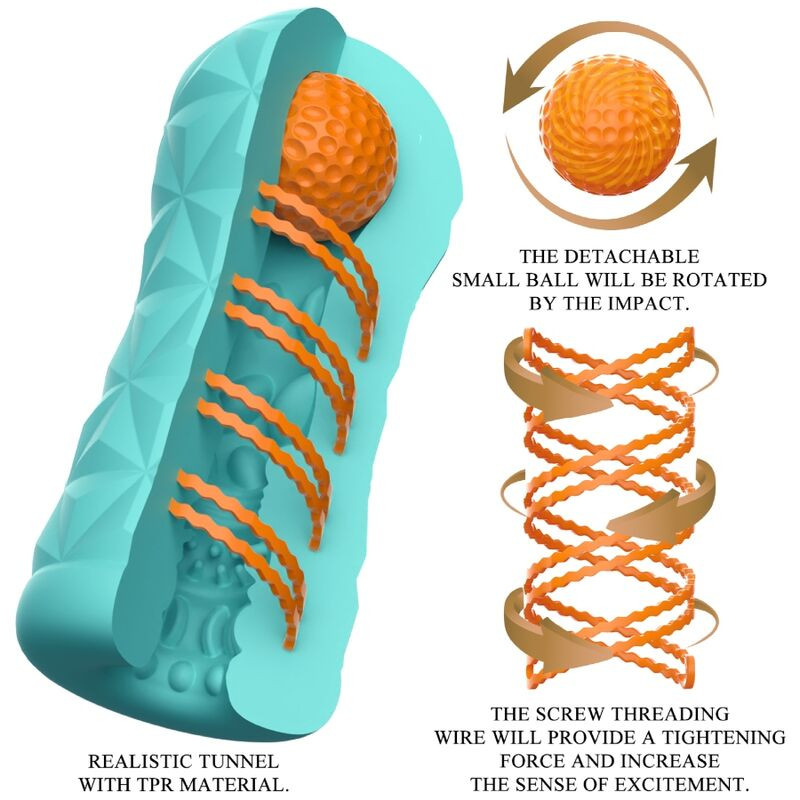 Kis eszköz hatalmas maszturbációs szórakozáshoz! Ez az átlátszó és újrahasználható maszturbátor forgó spirálral és oldalán egy stimulációs gömböt tartalmaz, a forgó spirál forgatja a maszturbátort behatolás közben, a felső golyó pedig a megfelelő pontot stimulálhatja és új érzést adhat. A hüvelynek belül stimuláló és izgalmas textúrája van, amely intenzíven és dinamikusan masszírozza a péniszt kézi munka közben. Ezt a stílusos, bőrbarát maszturbátort újra és újra használhatod. Nagyon könnyű használni és tiszta öröm!