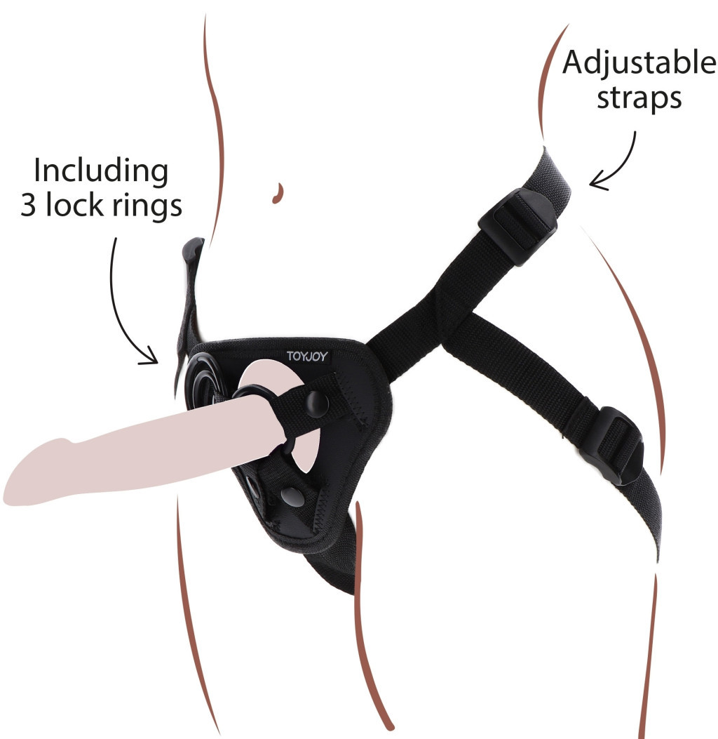 Fedezd fel az élvezetek új dimenzióját a prémium szexuális harness segítségével! A három különböző méretű gyűrű (35, 45 és 50 mm) lehetővé teszi, hogy tökéletesen illeszkedjen a kiválasztott dildóhoz, míg az állítható pántok garantálják a maximális kényelmet és stabilitást. Élvezd a szabadságot, hogy a saját tempódban tapasztald meg a vágyaidat! Tedd felejthetetlenné az éjszakáidat ezzel az izgalmas eszközzel!