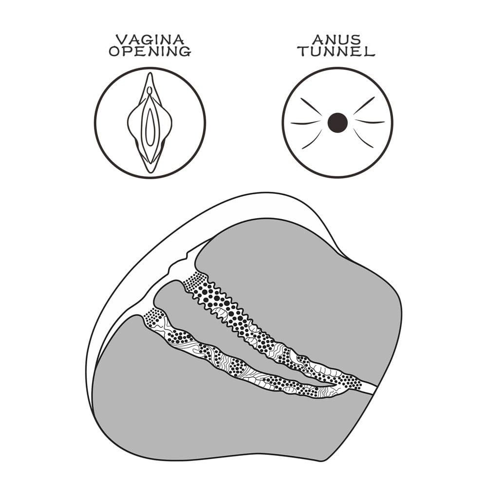 Ein individuelles erotisches Spielzeug, das nach einem Modell modelliert ist, aus lederähnlichem Material gefertigt, für Männer empfohlen, realistisch gestaltet und mit Anus- und Vagina-förmigen Körperöffnungen. Durch die Anwendung kann die Selbstkontrolle beim Geschlechtsverkehr erheblich verbessert werden, sodass die Zeit deutlich verlängert werden kann. Die Körperöffnungen wirken beim ersten Mal vielleicht zu eng, aber ihre Elastizität nimmt nach ein paar Anwendungen zu.