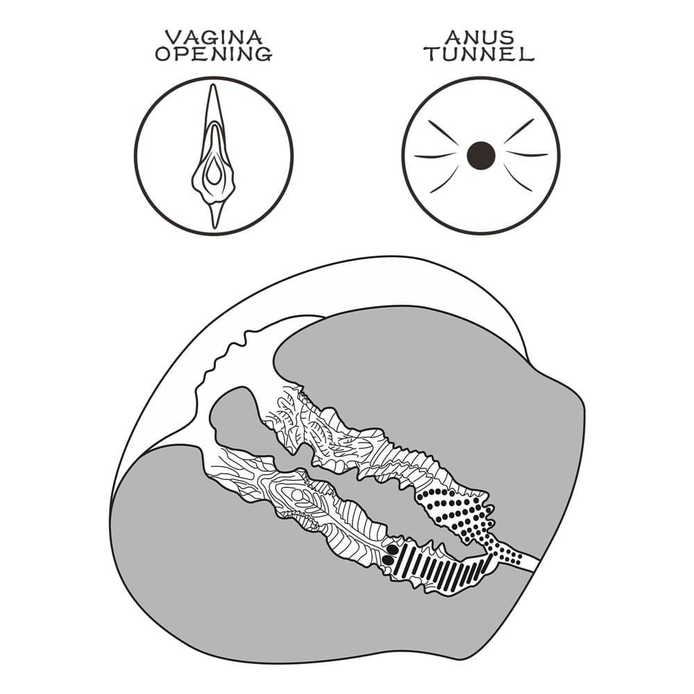 Ein individuelles erotisches Spielzeug, das nach einem Modell modelliert ist, aus lederähnlichem Material gefertigt, für Männer empfohlen, realistisch gestaltet und mit Anus- und Vagina-förmigen Körperöffnungen. Durch die Anwendung kann die Selbstkontrolle beim Geschlechtsverkehr erheblich verbessert werden, sodass die Zeit deutlich verlängert werden kann. Körperöffnungen wirken beim ersten Mal vielleicht zu eng, aber ihre Elastizität nimmt nach ein paar Anwendungen zu. Das Paket enthält außerdem einen Damentanga.
