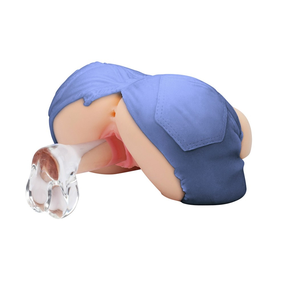 Kiváló minőségű, puha, bőrszerű anyagból készített, férfiaknak ajánlott, vaginát és ánuszt formázó testnyílással ellátott, egyéni erotikus játék, kék színű farmer rövidnadrágot utánzó díszítéssel. Használatával az aktus közbeni önkontroll nagymértékben fejleszthető, így annak ideje jelentősen növelhető. A termék súlya 2,2 kg.