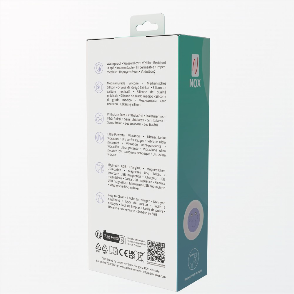 Orvosi minőségű szilikonból készített, ftalátmentes, ergonómiailag kialakított, kagyló formájú, 10 ultraerős rezgési funkcióval rendelkező, apró tüskés stimuláló felülettel kialakított, könnyen kezelhető izgató. A mágneses USB töltő a dobozban található.