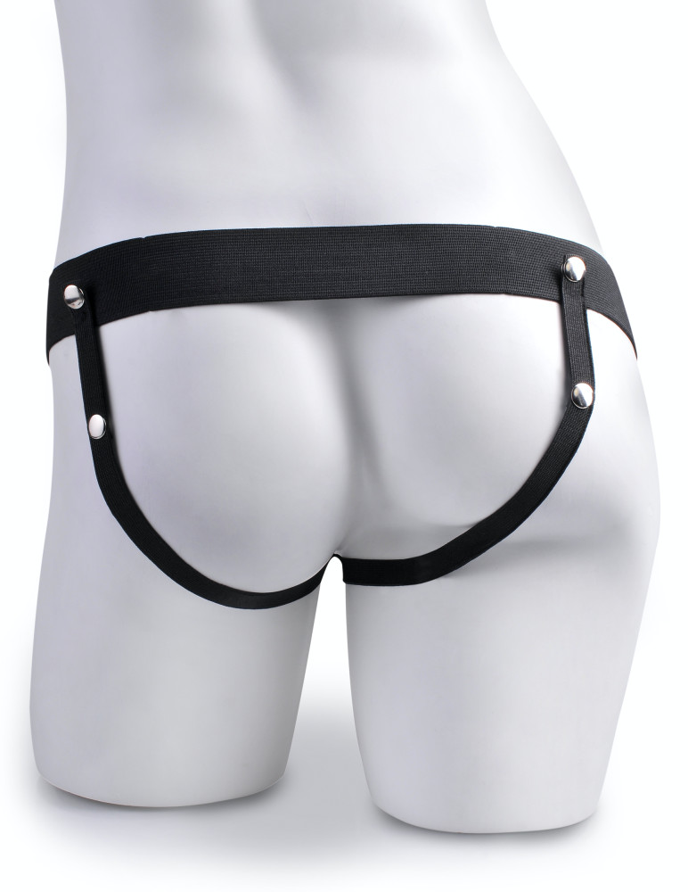 Bőrbarát anyagból készített, 10 rezgési funkcióval rendelkező, férfiak számára készített, felvehető, pénisz alakú, erezett felületű, herékkel kiegészített, vibrációs motorral ellátott, távirányítóval is szabályozható erotikus kiegészítő,  rugalmas szíjjal és pántokkal. A vibráció segítségével az élmény jelentősen fokozható. Az öv 71 és 132 cm derékbőségek között állítható.