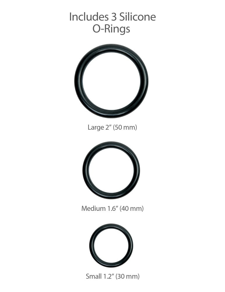 Tisztítása : minden használat előtt és minden használat után langyos szappanos vízzel és segédeszköz tisztítóval kell lemosni. Vízbázisú síkosító javasolt. A csomag tartalmaz 3 eltérő átmérőjű szilikon gyűrűt (3, 4, 5 cm).