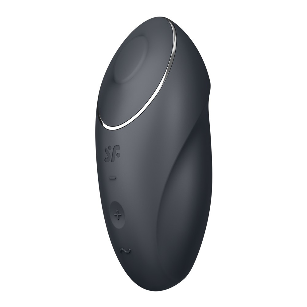 A kiváló minőségű, bőrbarát anyagból készített, két motorral felszerelt Satisfyer Tap & Climax 1 mindent tartalmaz, amit Ön egy izgatótól elvár: elegáns dizájn, kompakt méret és természetesen intenzív rezgések, amelyeket az előlapon található gombokkal könnyedén irányíthat. Válasszon 11 vibrációs program közül a gyengédtől az intenzívig. Ez a Satisfyer eszköz azonban még többet kínál annak érdekében, hogy a csikló stimulációt a következő szintre emelje! A 11 további koppintó programmal a Satisfyer Tap & Climax 1 gyengéden – vagy néha kicsit erőteljesebben – koppint a csiklójára, és teljesen új típusú izgalmakat kínál.